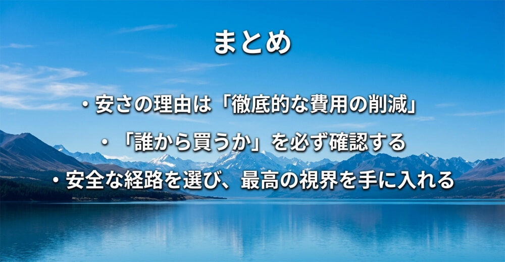 安さの裏にある仕組みを正しく理解し、販売元などをしっかりチェックして賢く使い分けましょう。